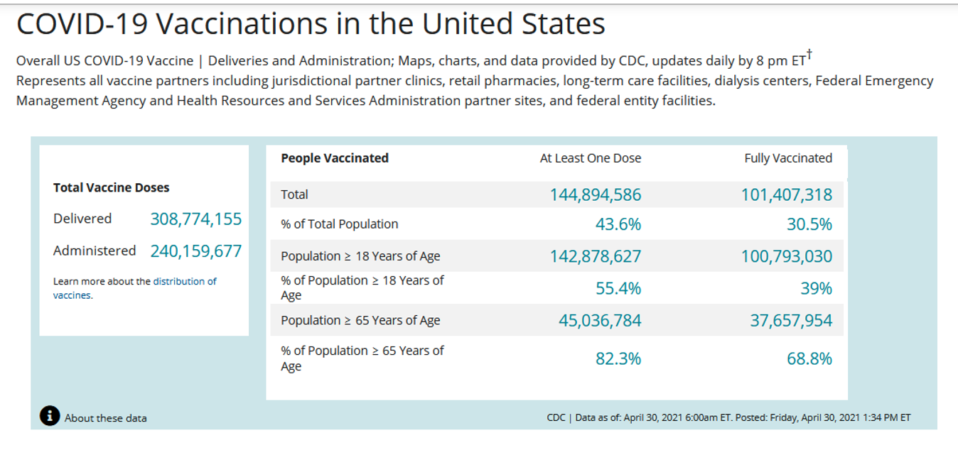 April 30, 2021 – Coronavirus (COVID-19) Update: April 30, 2021