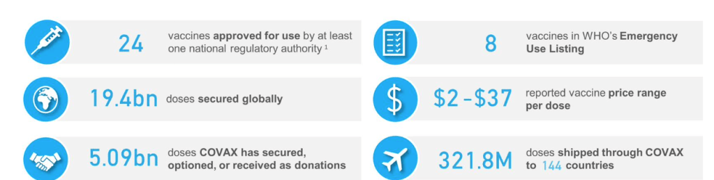 Ending the pandemic will require the world to shift its focus to equitably deploying and optimizing the use of vaccines now being produced at scale. In the second half of 2021, with a number of COVID-19 vaccines being produced, the focus must shift to equitable vaccine deployment and optimum use based on safety and effectiveness data.