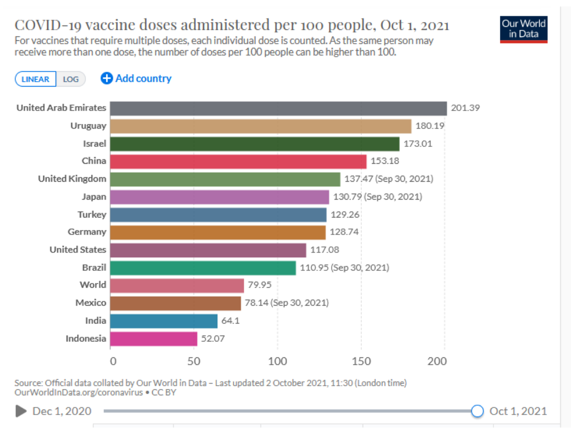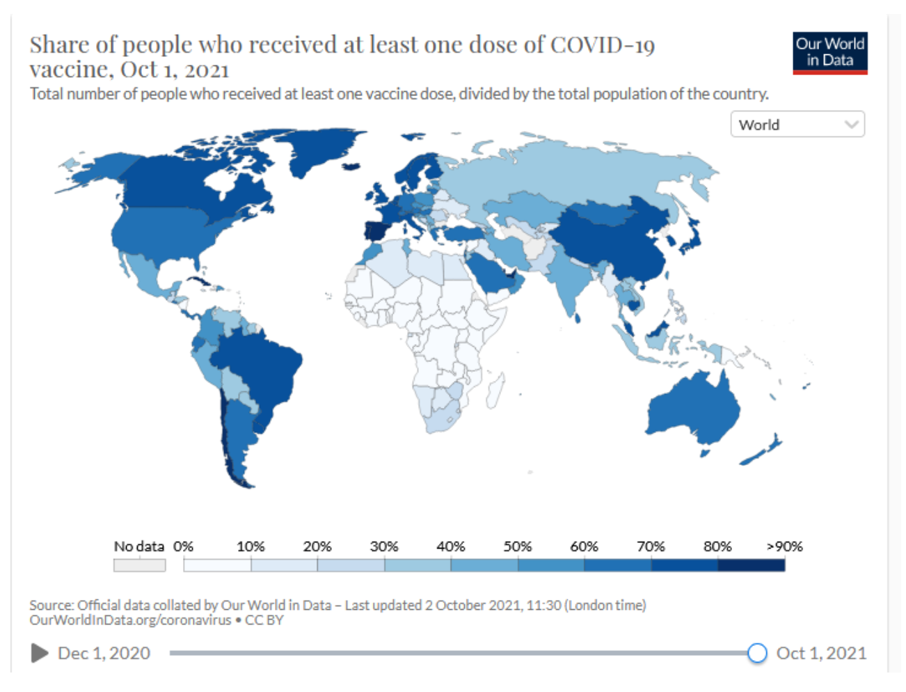The global goal of fully vaccinating 10% of every country’s population by 30 September was set in May by the World Health Assembly, the world’s highest health policy-setting body. Almost 90% of high income-countries have met this target.