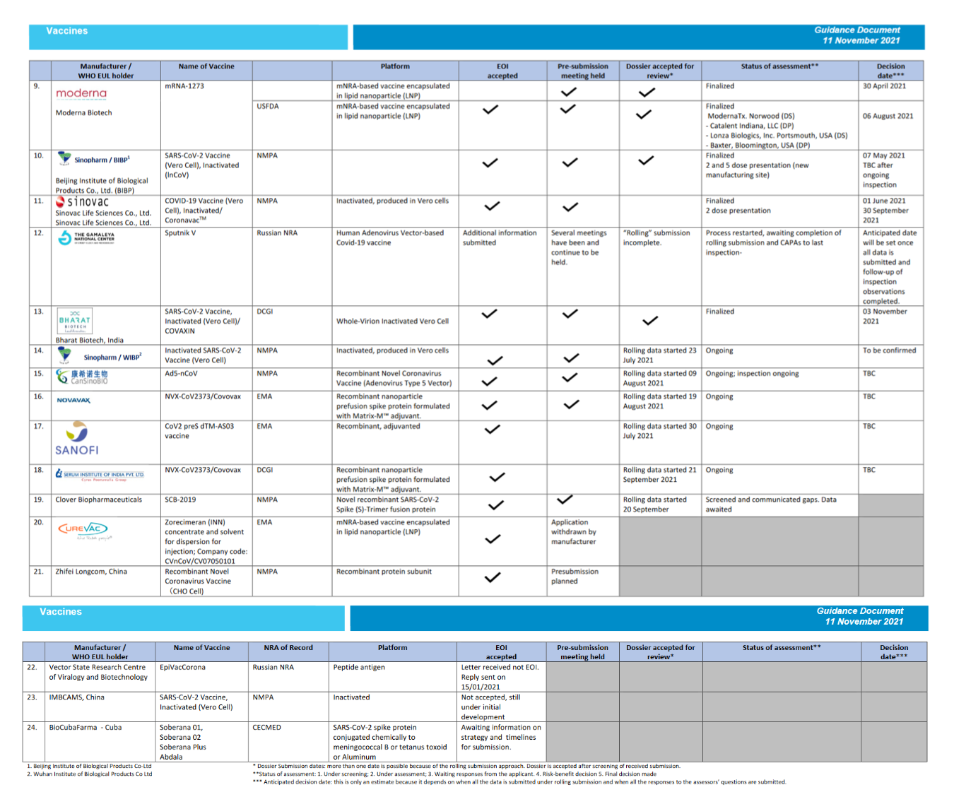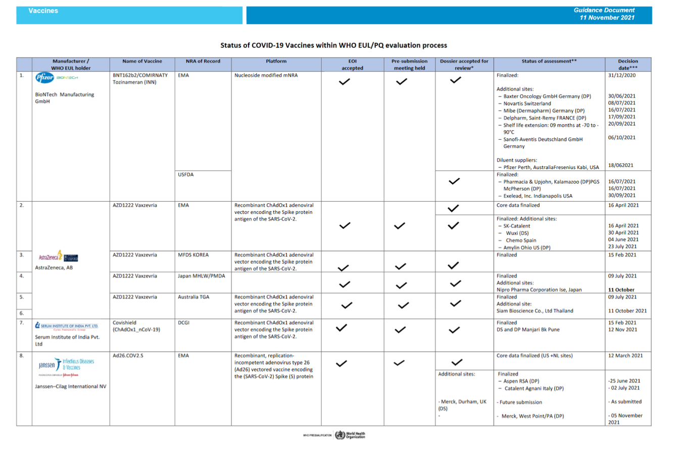 Status of COVID-19 Vaccines within WHO EUL/PQ evaluation process 11 November 2021