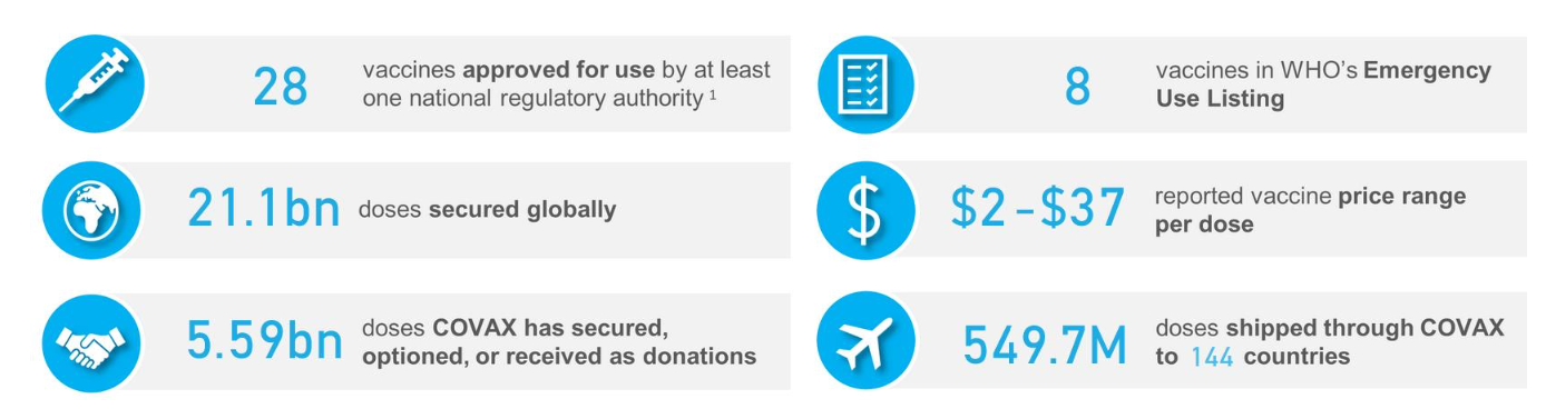 The greatest burden of disease in terms of severe disease and deaths remains among older persons and those with comorbidities, the evidence of which led to the WHO Prioritization Roadmap which identifies high priority-use groups according to vaccine supplies available to countries(1). WHO recognizes that various countries are in different pandemic phases with different vaccination coverage rates. The WHO global vaccination strategy targets remain: 40% of each country’s population by end of 2021, and 70% by mid-2022(2). These coverage targets were set to ensure an equitable pace of global vaccine rollout & prioritization of those at highest risk. To date, these targets have not yet been achieved.