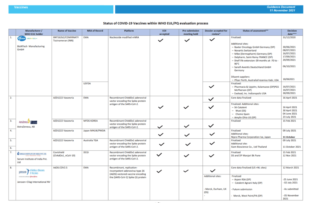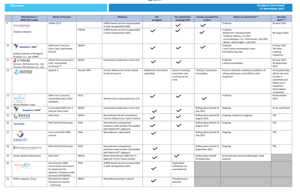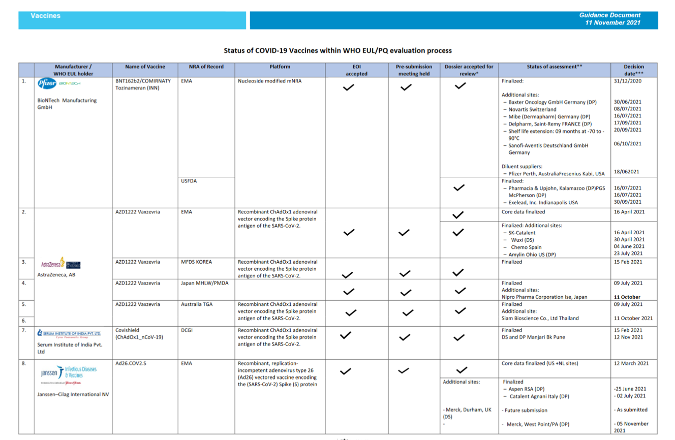 Although the majority of COVID-19 vaccines are only approved for use in adults aged 18 years and above, an increasing number of vaccines are now also being authorized for use in children. Some countries have given emergency use authorization for mRNA vaccines for use in the adolescent age group (aged 12-17 years): BNT162b2 developed by Pfizer, and mRNA 1273 developed by Moderna. In November 2021, one stringent regulatory authority approved the mRNA vaccine BNT162b2 for the use in children aged 5-11. Trials in children as young as age 3 years were completed for two inactivated vaccines (Sinovac-CoronaVac and BBIBP-CorV) and these products were approved by Chinese authorities for the age indication of 3-17 years; although these vaccine products have received EUL for adults, they have not yet received WHO EUL for children. Covaxin, an adjuvanted inactivated vaccine developed by Bharat, was approved in India for the age indication of 12-17 years; but not yet received WHO EUL for this age indication. The Indian regulatory authorities have given approval to ZycovD, a novel DNA vaccine, for ages 12-17 years; however, this vaccine has not yet received WHO EUL. Several COVID-19 vaccines are undergoing trials in younger age groups (including as young as 6 months of age), but results have not yet been published.
