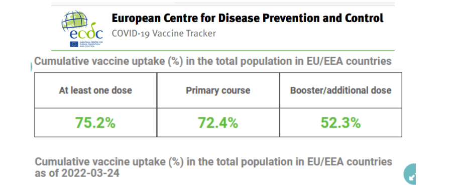 Our World in Data Coronavirus (COVID-19) Vaccinations[Accessed 26 Mar 2022] 64.2% of the world population has received at least one dose of a COVID-19 vaccine. 11.16 billion doses have been administered globally, and 15.63 million are now administered each day. Only 14.4% of people in low-income countries have received at least one dose.